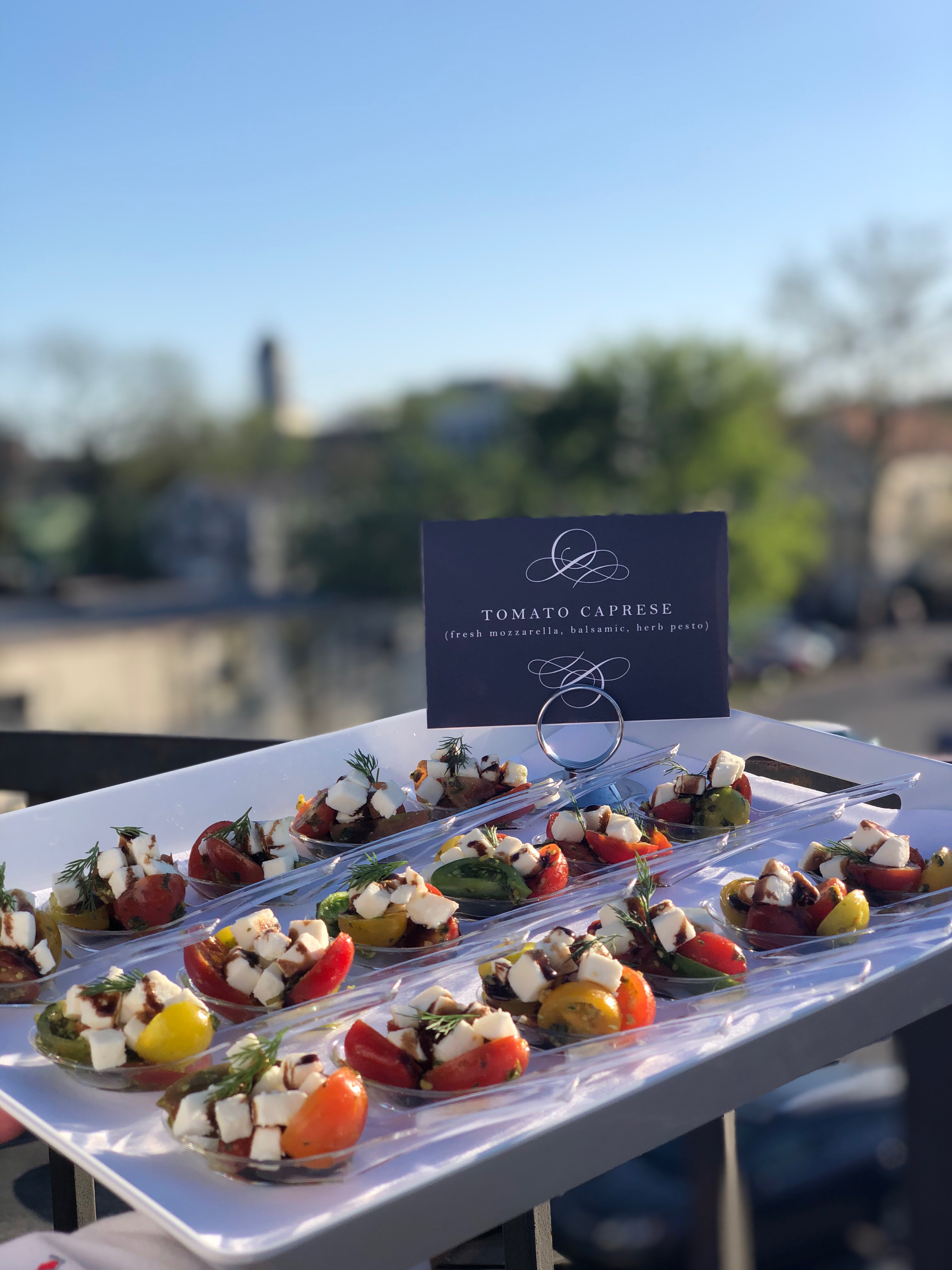-Casual, cocktail reception with hors d'oeuvres and drinks from a private bar.